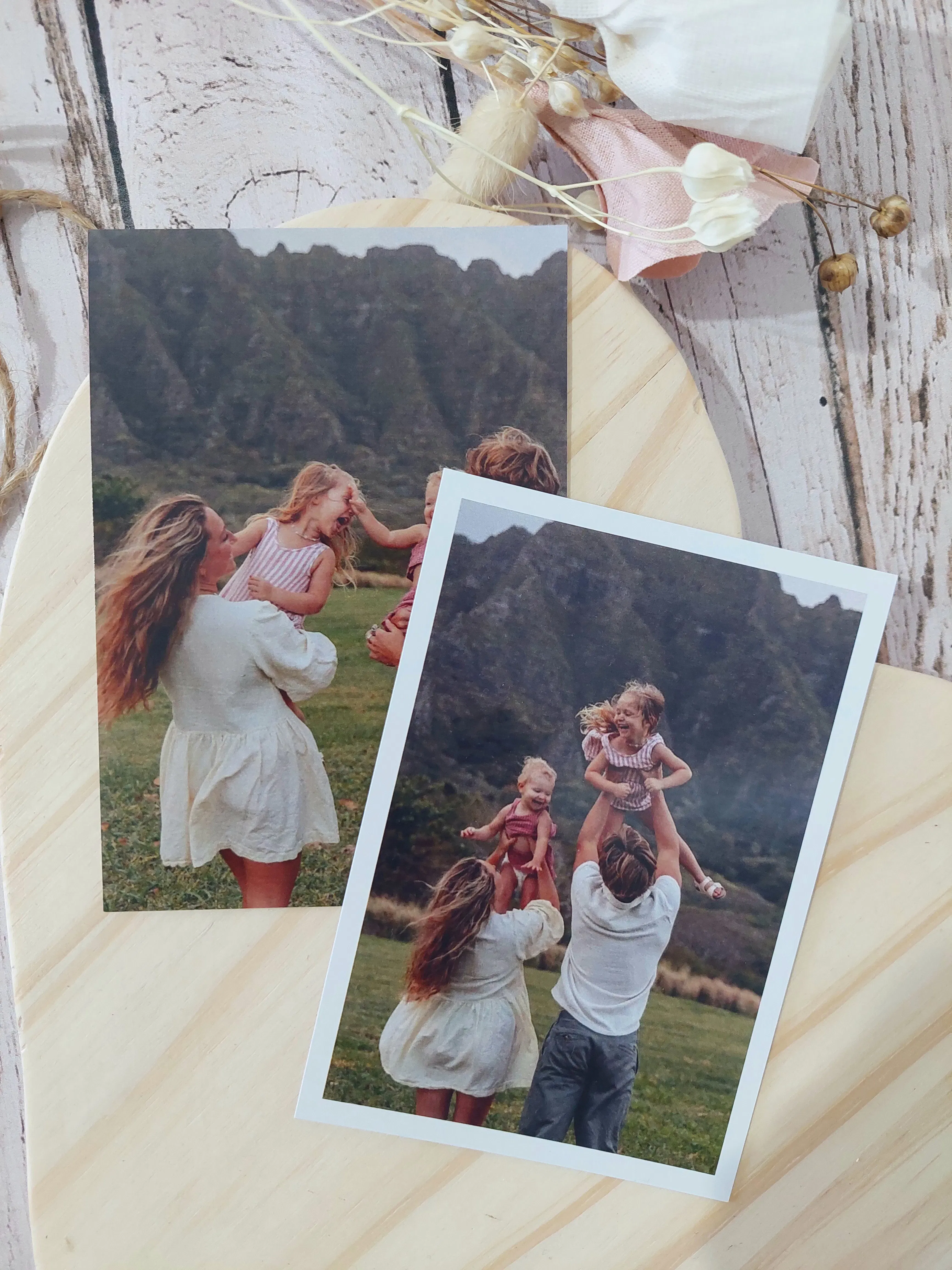 Impresas en papel fotográfico simil Kodak de 260 grs con acabado brillante.